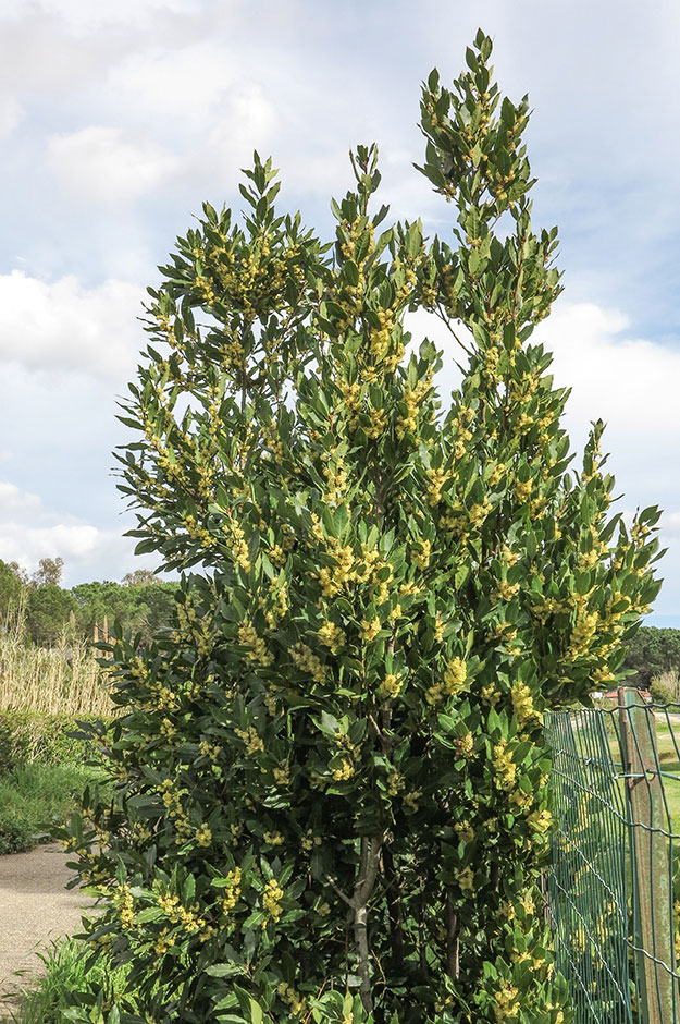 Eine immergrüne Holzpflanze mit buschigem, manchmal baumartigem Wuchs. Er wächst schnell und wird sehr häufig für den Bau von Hecken verwendet. Die Blätter sind ledrig und stark aromatisch. Im Winter und im zeitigen Frühjahr füllt sich die Pflanze mit kleinen, duftenden weißen Blüten, die in kleinen Dolden angeordnet sind. Die Früchte sind aromatische, eiförmige Steinfrüchte, die jeweils nur einen Samen enthalten. Es ist nicht ungewöhnlich, an derselben Pflanze die neuen Blüten direkt neben den alten Früchten zu sehen. Der Name soll sich vom lateinischen „laus“ (Lob) ableiten, um die bereits seit der Antike bekannten wohltuenden Eigenschaften der Pflanze zu würdigen und zu preisen. Blätter und Früchte finden in der Küche vielseitige Verwendung. In der Mythologie entzieht sich Daphne dem Gott Apollon, indem sie sich in einen Lorbeerbaum verwandelt. Apollon schlang leidenschaftlich seine Arme um die Zweige und verkündete: „Wenn du schon nicht meine Gattin sein kannst, so sollst du doch mein Baum sein; mein Haar sollst du von nun an immer schmücken.“ Aus dieser mythologischen „Zudringlichkeit“ entstand der Brauch, Kaiser und später auch Sieger mit Lorbeer zu krönen. In der Folge weitete sich diese Sitte auf berühmte Dichter, Wettkampfsieger und schließlich auf Doktoren der Medizin und anderer Disziplinen aus, die mit beerenbesetzten Lorbeerzweigen gekrönt wurden. Davon leitet sich das Wort „Laureat“ (von Laurus) ab, um denjenigen zu ehren, der einen akademischen Grad erlangt.