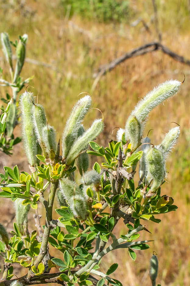 La ginestra spinosa nel periodo di massima fioritura colora di giallo interi versanti di montagna. Questa leguminosa è legnosa, molto ramificata, con portamento cespuglioso e rami che portano spine acute. I rametti più giovani sono ricoperti di una leggera peluria. Le foglie sono trifogliate e i fiori normalmente solitari ma talvolta riuniti in piccole infiorescenze. I frutti sono dei legumi che contengono fra 2 e 9 semi. Vegeta nelle garighe, nei luoghi rocciosi e nelle aree attraversate da incendi. Forma delle macchie impenetrabili e fitte ed è di particolare importanza per contrastare l’erosione dei terreni, per la fissazione dell’azoto e per l’accumulo di sostanza organica che prepara il suolo ad ospitare l’insediamento di associazioni vegetali più evolute. Un tempo veniva utilizzata per pulire i camini e se ne faceva fascine per i forni.